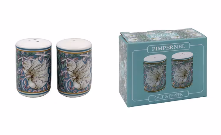 Fina salt och pepparströare från William Morris med deras fina mönster Teal Pimpernel. Tål både maskindisk och mikrovågsugn. Levereras i en fin presentförpackning. Mått: 5 x 5 x 7 cm.